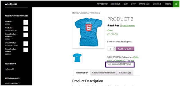 Now, if you’ll go to product page again you’ll see custom field value being displayed there.